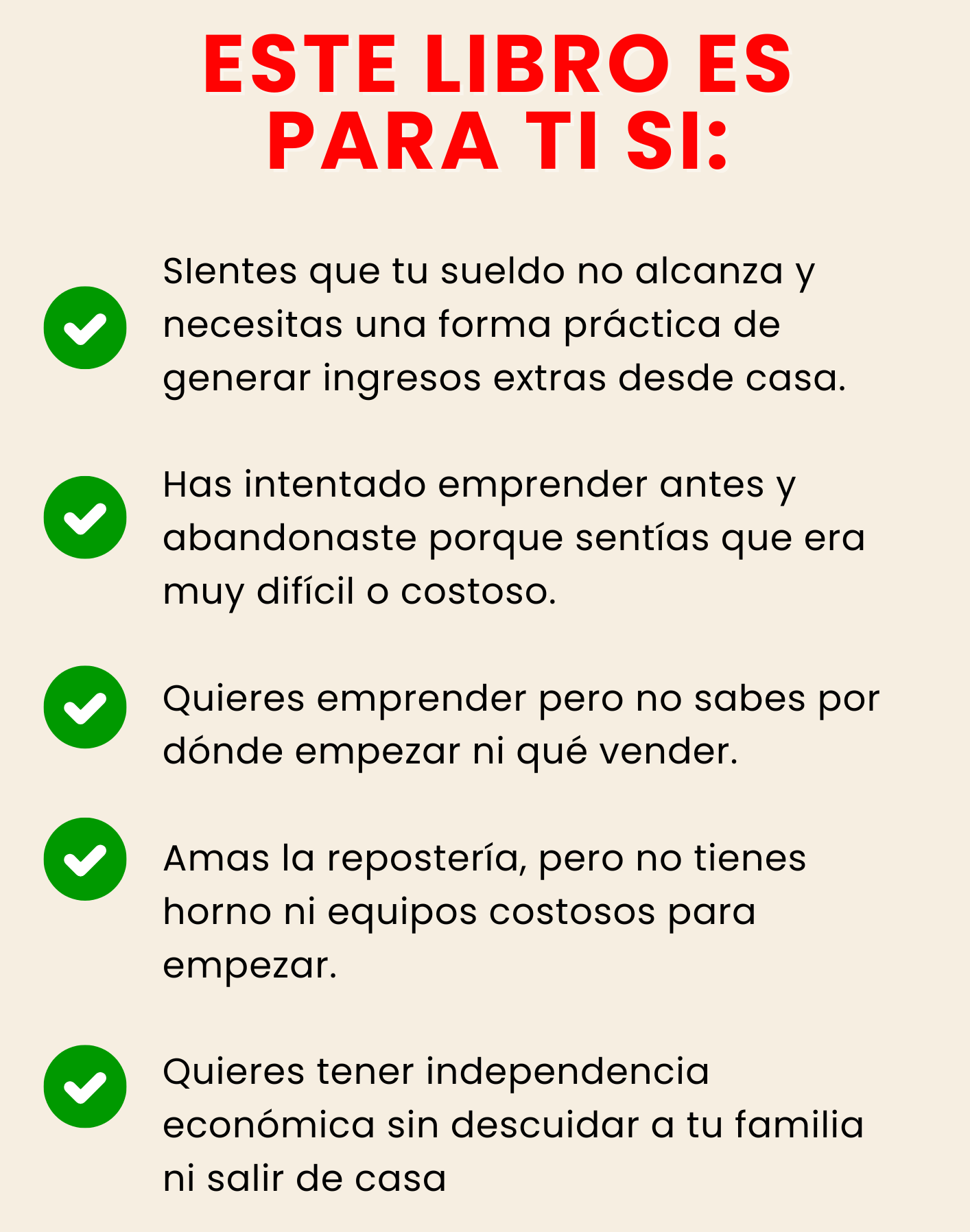 Sí, las recetas están diseñadas para ser fáciles, económicas y atractivas para la venta. Además, incluyen tips de presentación y venta para que puedas empezar tu negocio casero desde el primer día.